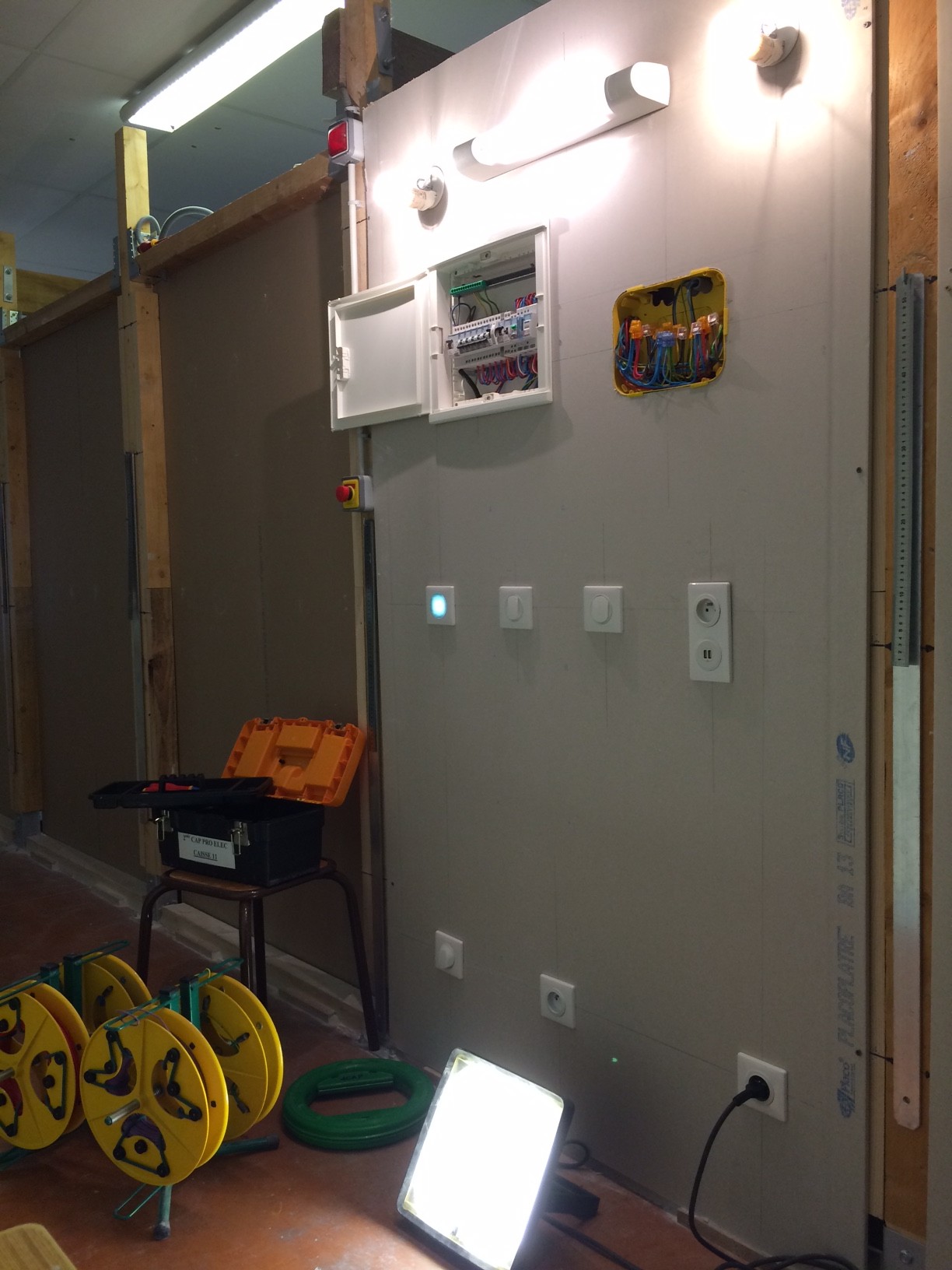 Plateau technique électrotechnique : habitat 2017-07-03 par Admintert Réalisation d'une installation électrique, maison d'habitation, projet d'équipe.Installation électrique, travail individuel.Installation électrique, travail individuel.Armoire matériel habitat.