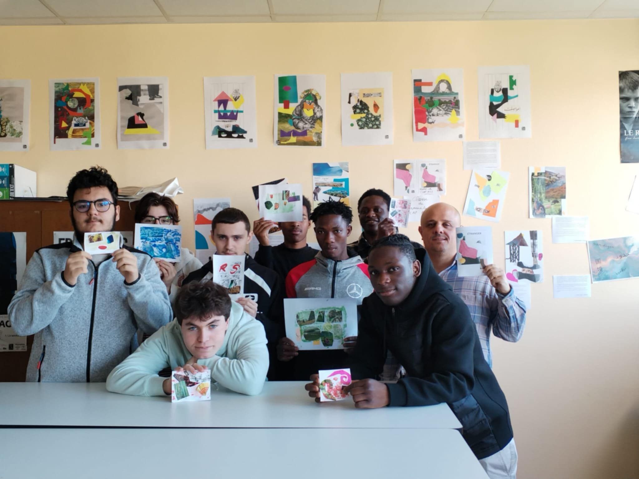 Les élèves de Terminale CAP RICS ont réalisé des autoportraits graphiques en s'inspirant des œuvres de l'artiste angoumoisin, d'origine libanaise, Rojer Feghali.